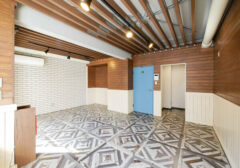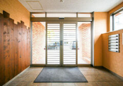 飛び石仕様の坪庭な玄関。 賃貸の室内玄関でこのタイプは見たことありません。