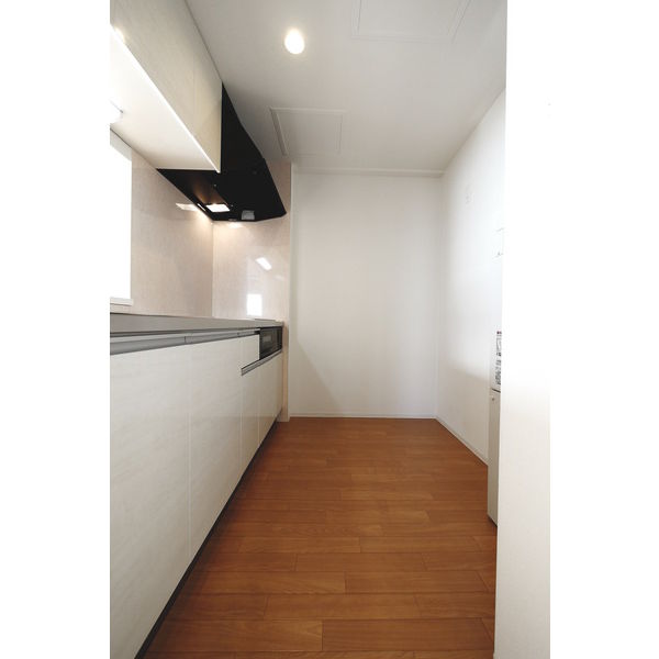 間取り図を見ると、LD11.1帖を中心に2つの洋室が並ぶ構成になっており、子ども部屋と寝室をゆったりと使い分けられる設計です。大きな掃き出し窓からは光が豊かに差し込み、室内全体が明るく包まれています。南西向きの角部屋ならではの開放感は、日中の暮らしをおおらかに広げてくれます。IHクッキングヒーター3口以上を備えた対面式システムキッチンは、リビングに目を向けながら料理ができる配置で、子どもの様子を確認しながら食事の準備を進めることができます。暖房は都市ガスとエアコンを併用できる構成で、北海道の冬も室内を安定した温度に保ちやすい環境です。